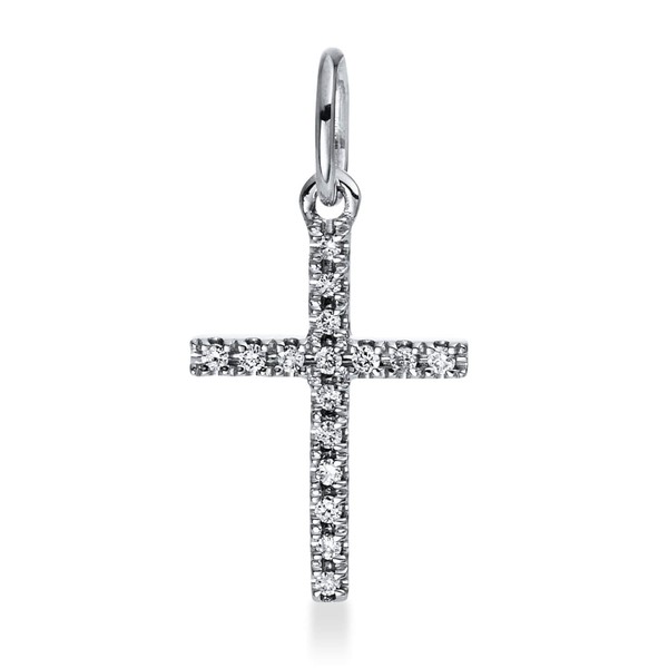 Anhänger Kreuz aus 750 Gold Weißgold 16 Brillanten 0,03ct TW-SI 16x9mm mit Öse