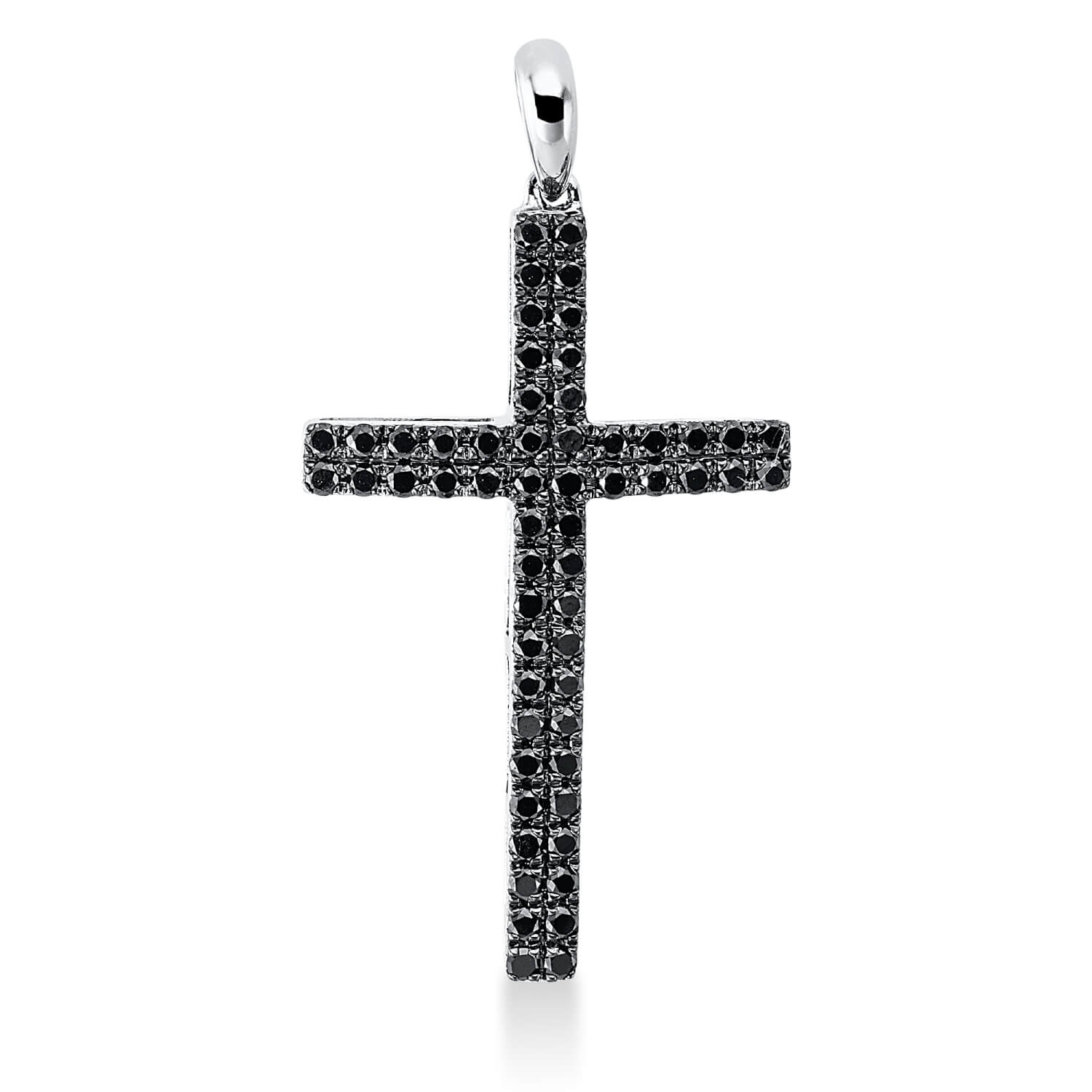 Anhänger Kreuz aus 750 Weißgold 58 Brillanten 0,44ct schwarz 31,8x16,6mm