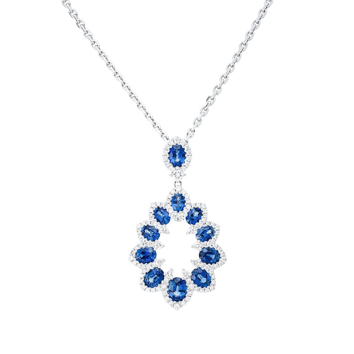 Anhänger aus 750 Weißgold 11 Saphire 2,91ct blau 110 Brillanten 0,62ct TW-SI