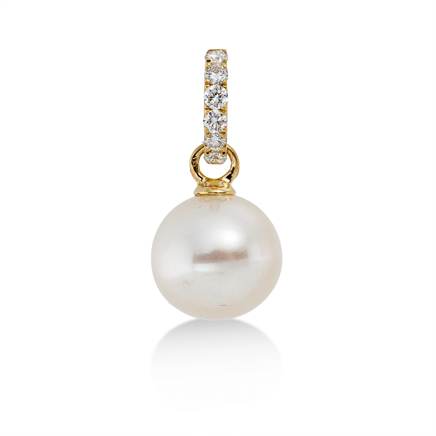 Anhänger aus 750 Gelbgold Süßwasser-Perle 9,5mm weiß 6 Brillanten 0,13ct W-SI