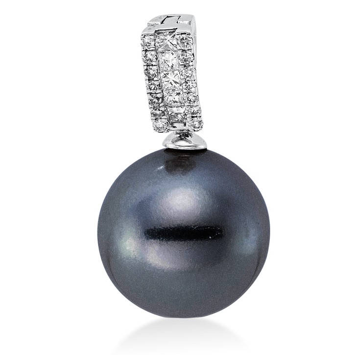 Anhänger aus 750 Weißgold Tahiti-Perle 10,5mm 19 Diamanten 0,12ct W-SI