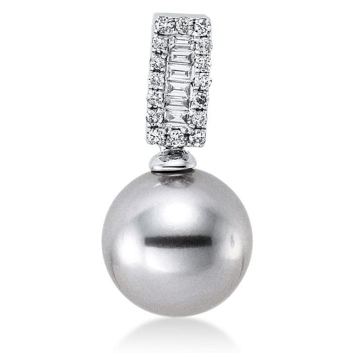 Anhänger aus 750 Weißgold Tahiti-Perle 10,5mm silbergrau 22 Diamanten 0,14ct W-SI