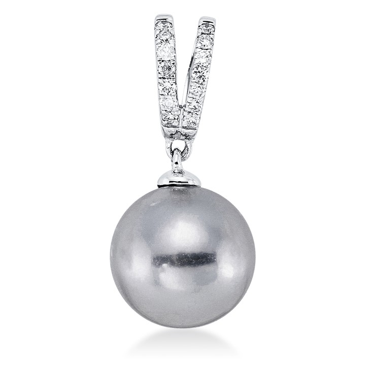 Anhänger aus 750 Weißgold Tahiti-Perle 10mm grau 14 Brillanten 0,08ct W-SI