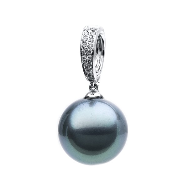 Anhänger aus 750 Weißgold Tahiti-Perle 11mm dunkel 19 Brillanten 0,07ct TW-SI