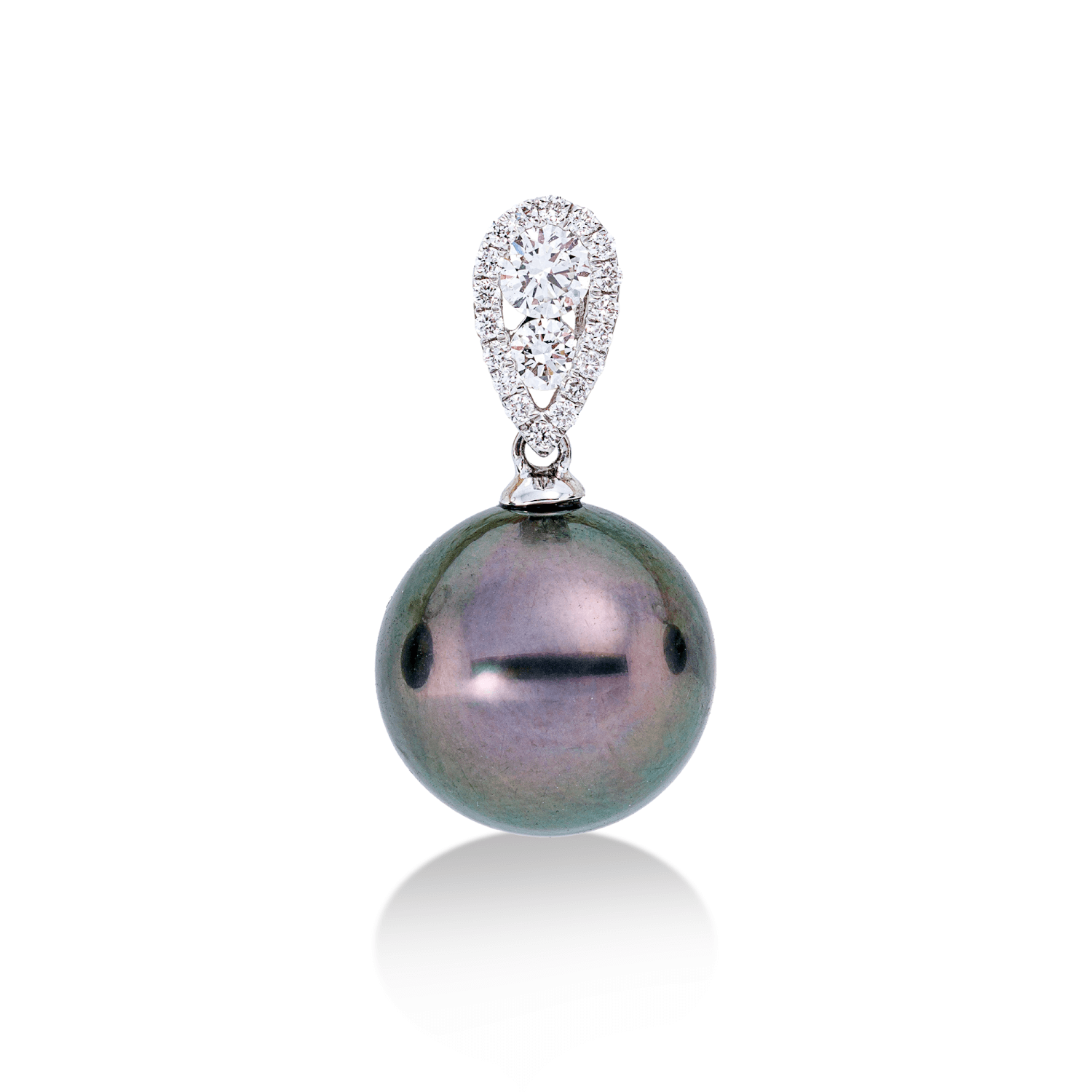 Anhänger aus 750 Weißgold Tahiti-Perle 11mm grau 20 Brillanten 0,22ct W-SI