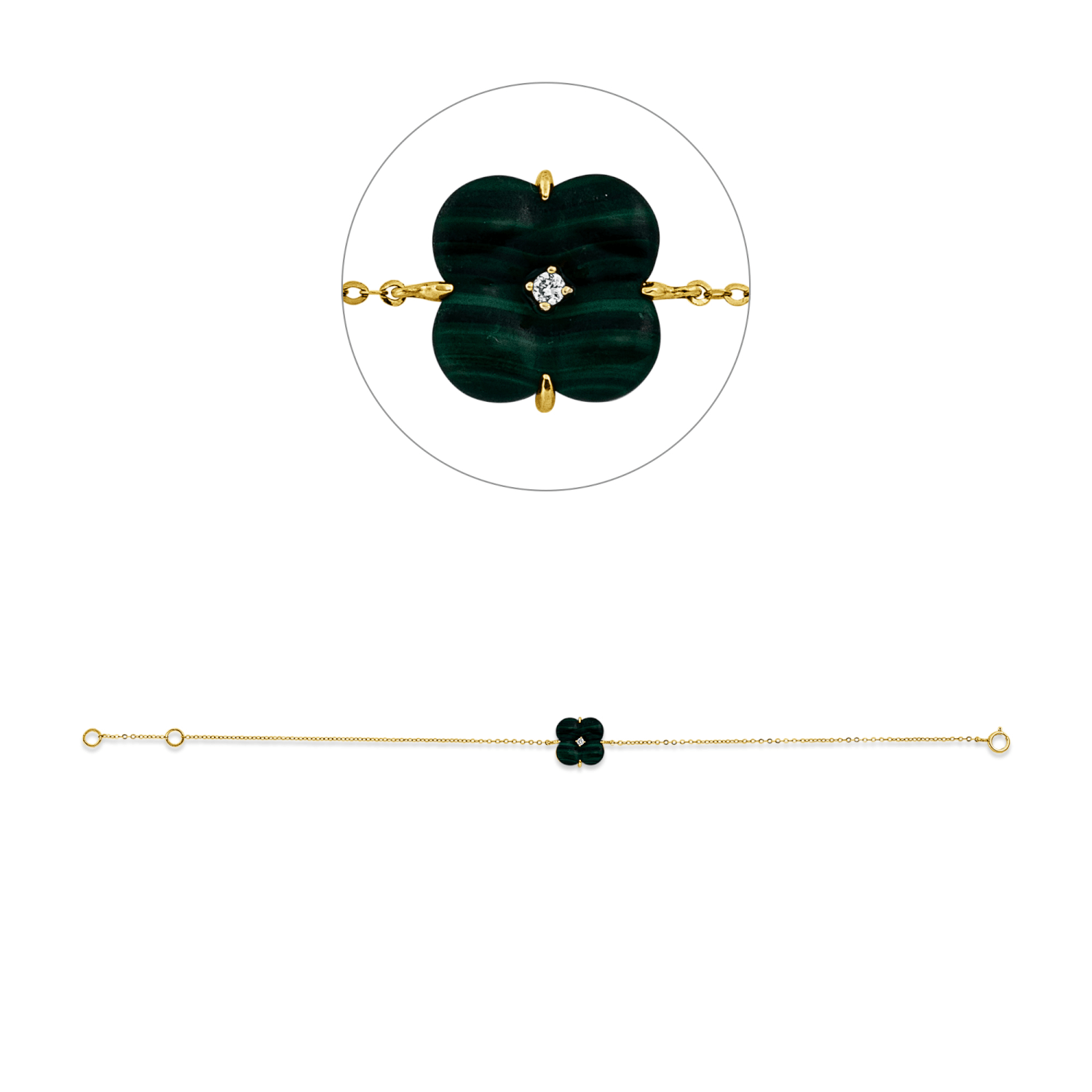 Armband aus 750 Gelbgold Malachit 1 Brillant 0,02ct
