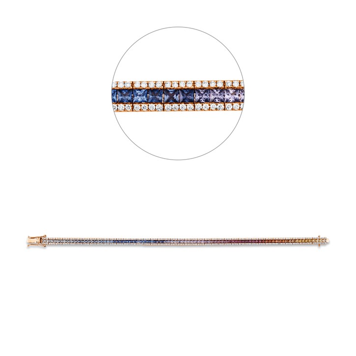 Armband 750 Rotgold 84 Saphire 4,44ct mehrfarbig 336 Brillanten 1,21ct TW-SI L:18cm