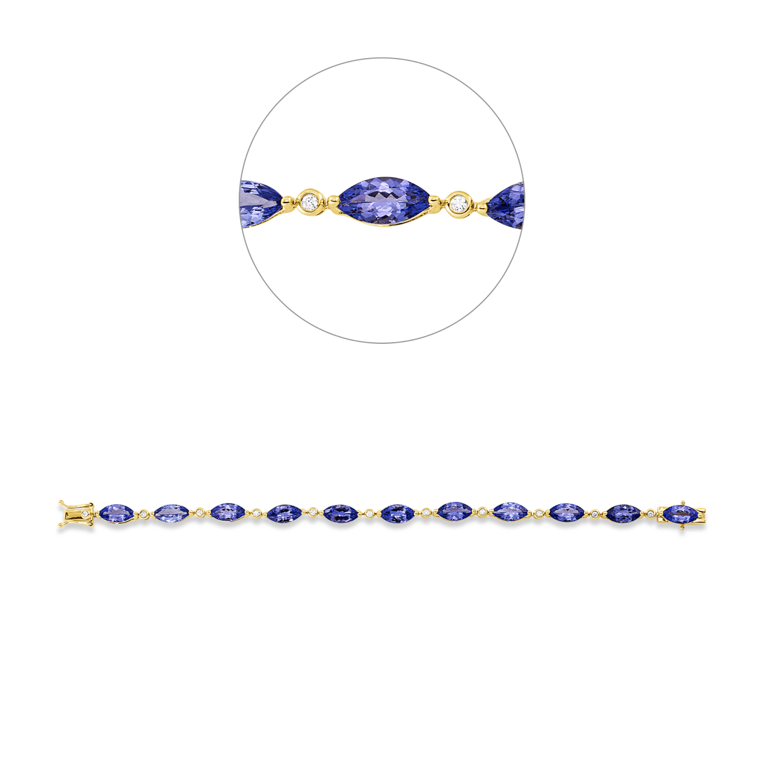 Armband aus 585 Gelbgold 11 Tansanite 11 Brillanten 0,18ct