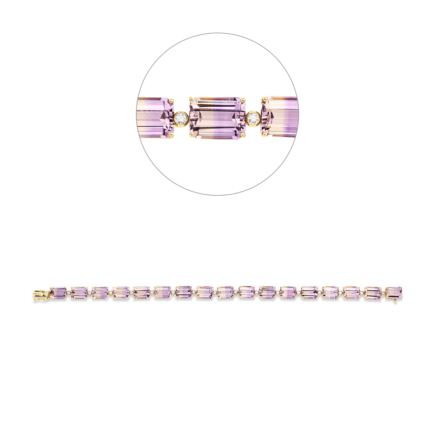 Armband aus 750 Gelbgold 17 Ametrine 26,2ct mehrfarbig 17 Brillanten 0,28ct TW-PI