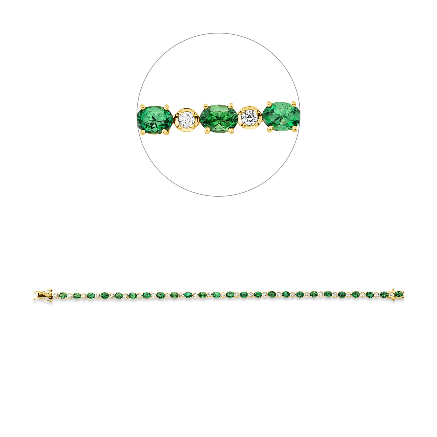 Armband aus 750 Gelbgold 25 Tsavorithe 5,7ct grün 25 Brillanten 0,51ct F-SI