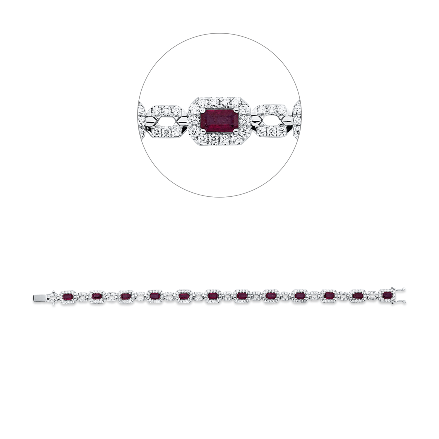 Armband aus 750 Weißgold 12 Rubine 240 Brillanten 2,11ct