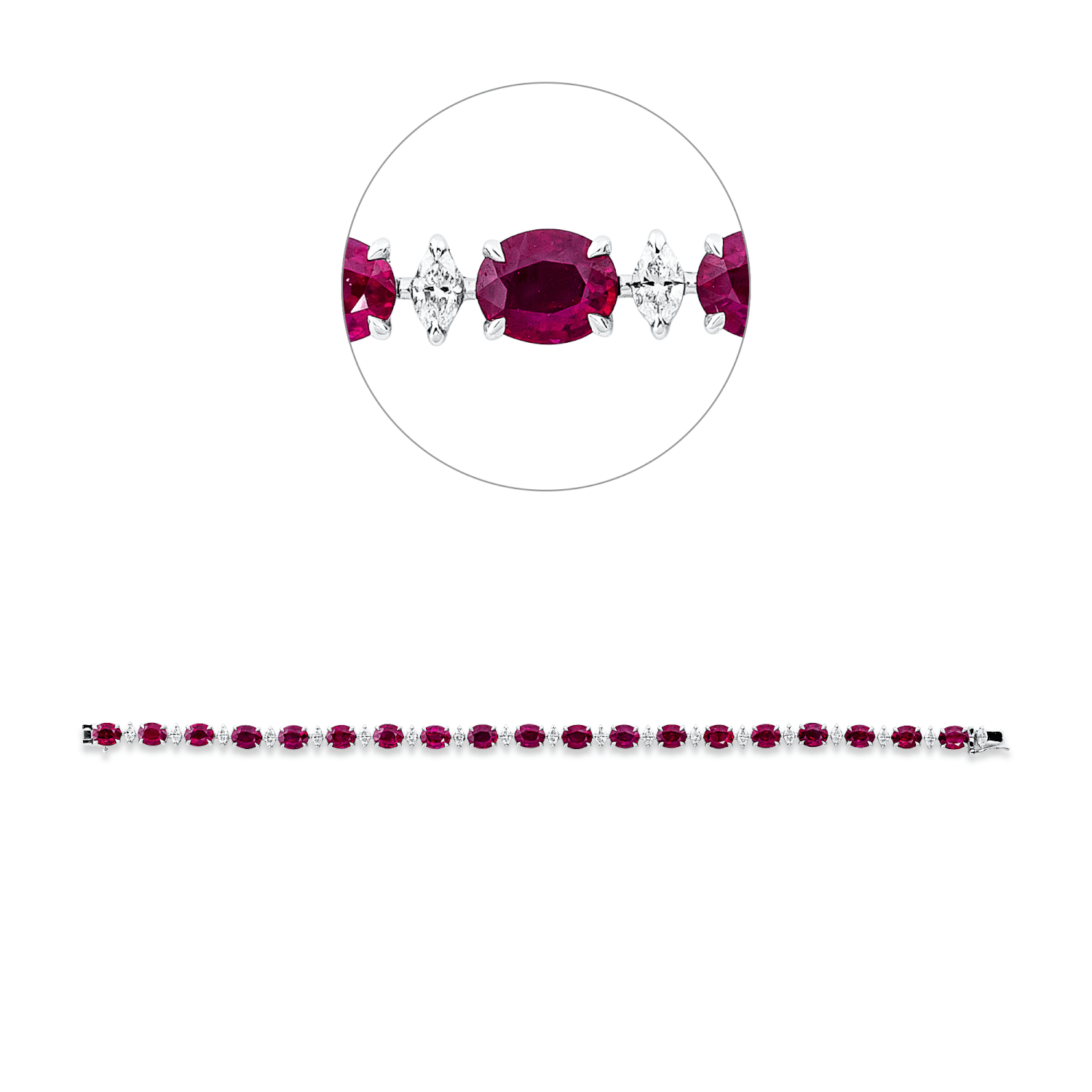 Armband aus 750 Weißgold 19 Rubine 19 Diamanten 1,07ct