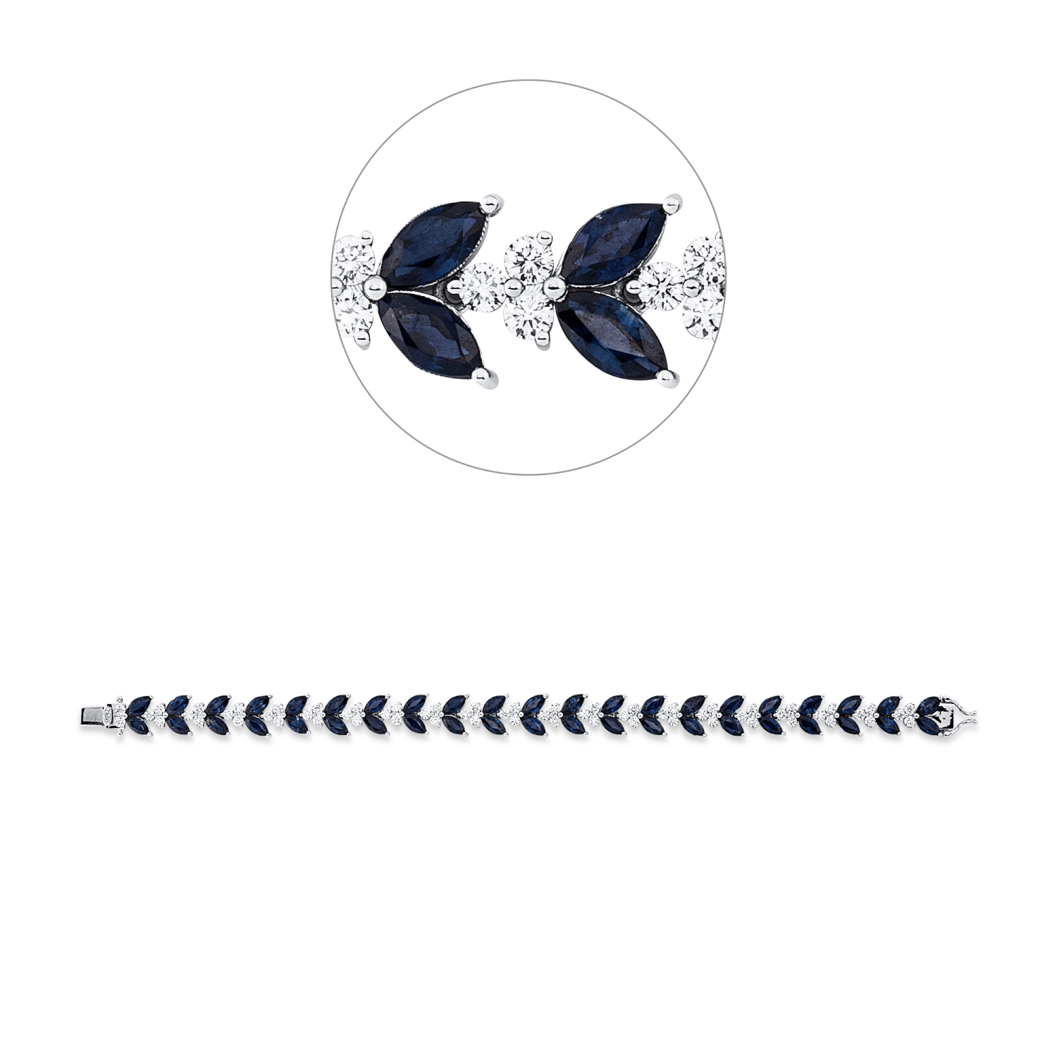Armband aus 750 Weißgold 42 Saphire 14,59ct blau 62 Brillanten 2,51ct F-VSI