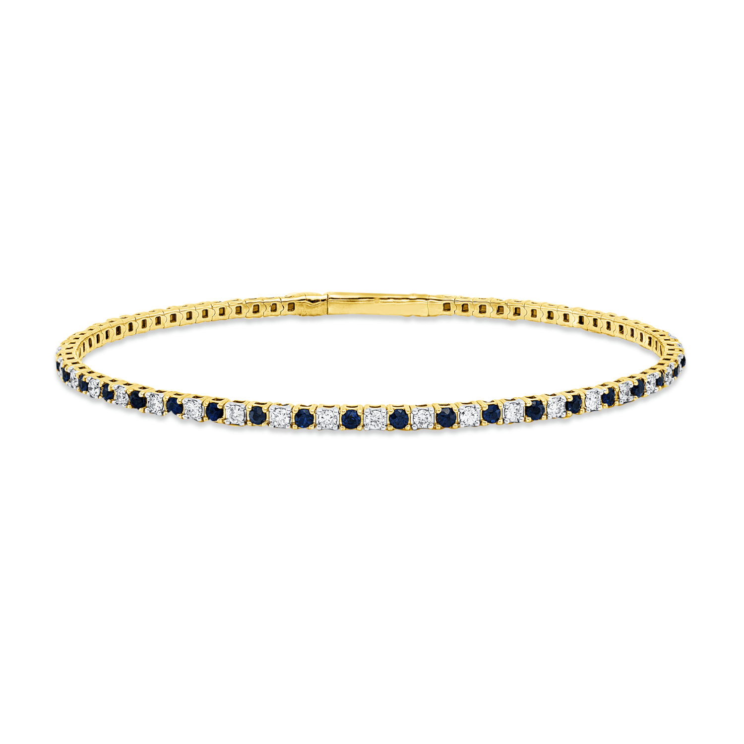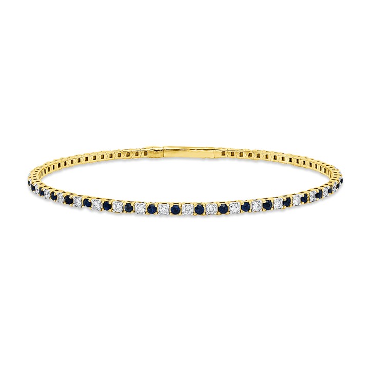 Armreif aus 750 Gelbgold 38 Saphire 1,15ct blau 37 Brillanten 0,88ct TW-SI Ø58mm