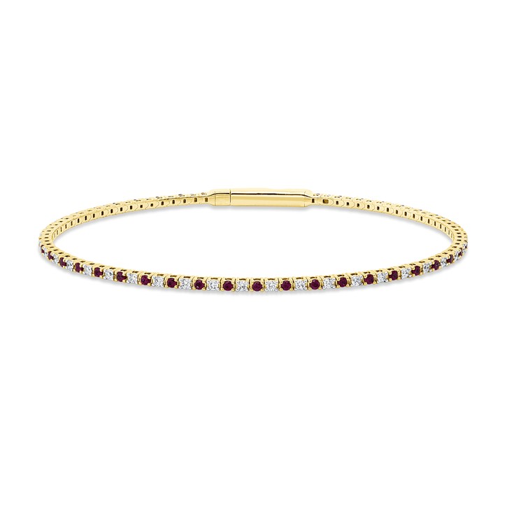 Armreif aus 750 Gelbgold 42 Rubine 0,59ct rot 41 Brillanten 0,49ct TW-SI
