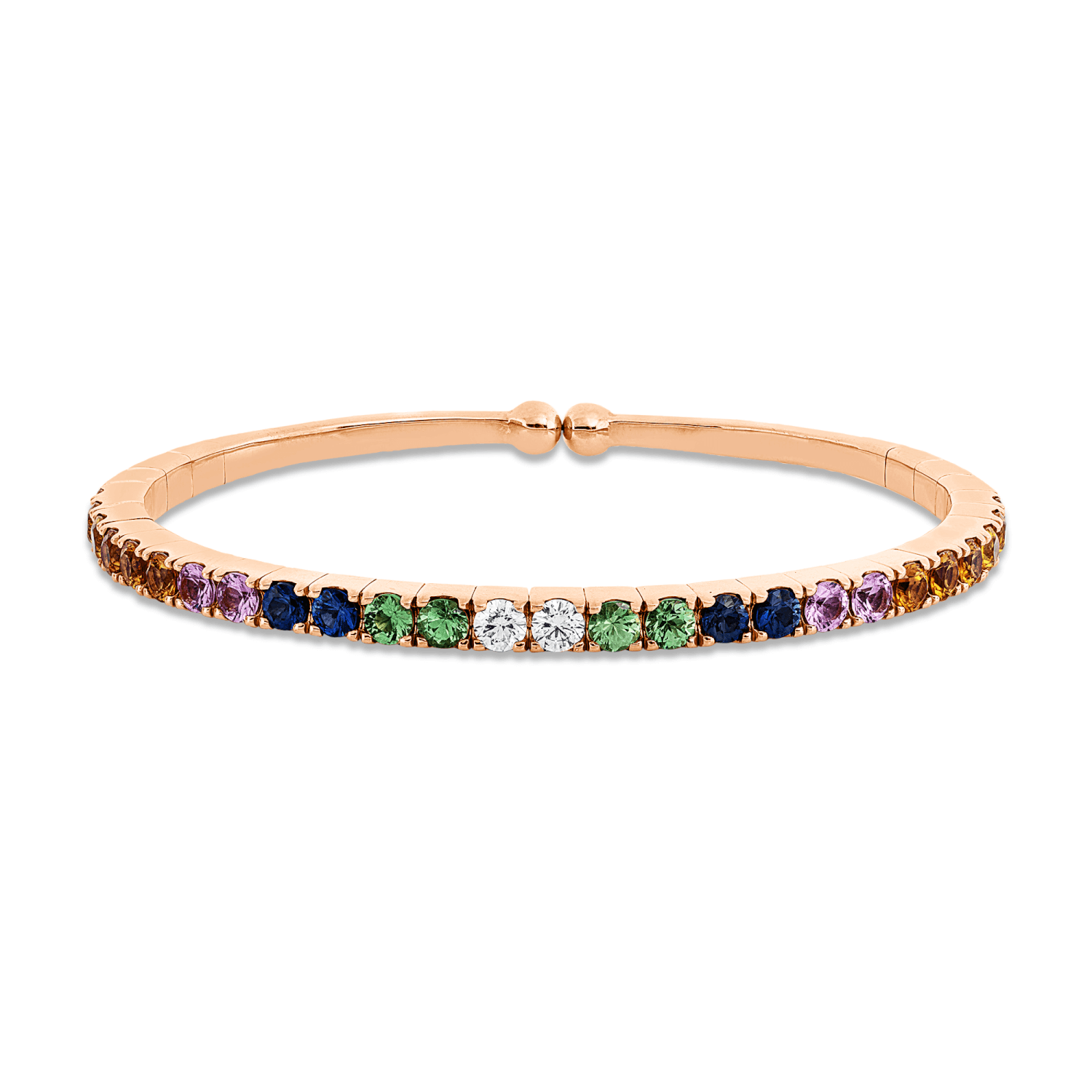 Armreif aus 750 Rotgold 24 Saphire 4,27ct mehrfarbig 2 Brillanten 0,31ct TW-VSI/SI