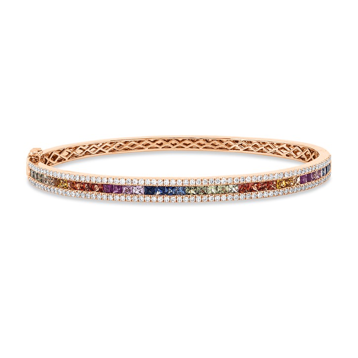 Armreif aus 750 Rotgold 40 Saphire 2,43ct mehrfarbig 134 Brillanten 0,83ct TW-SI