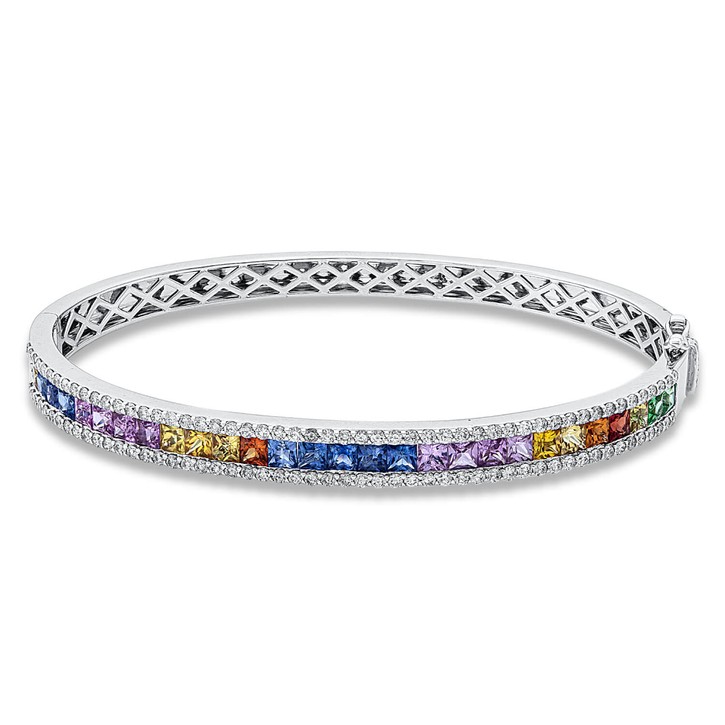 Armreif aus 750 Weißgold 28 Saphire 4,12ct mehrfarbig 104 Brillanten 1,19ct TW-SI
