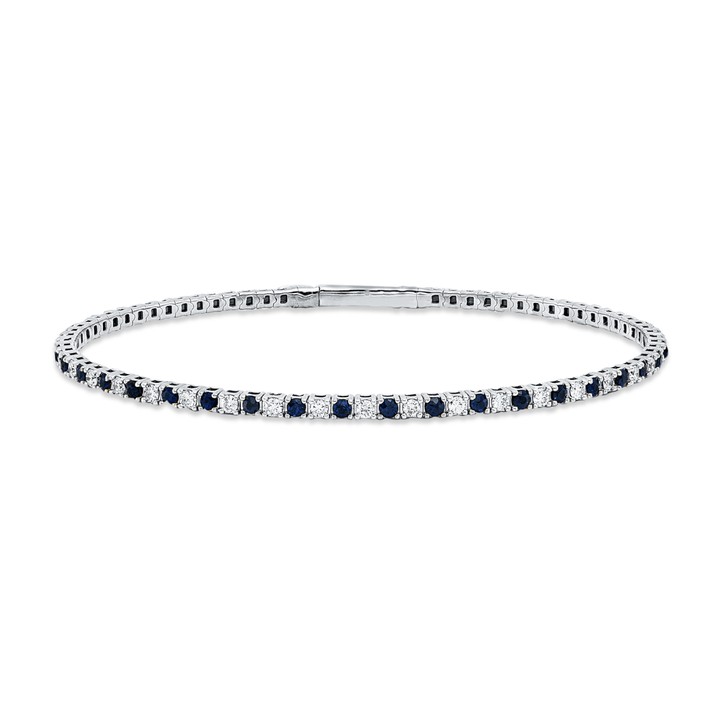Armreif aus 750 Weißgold 38 Saphire 1,09ct blau 37 Brillanten 0,91ct TW-SI Ø58mm