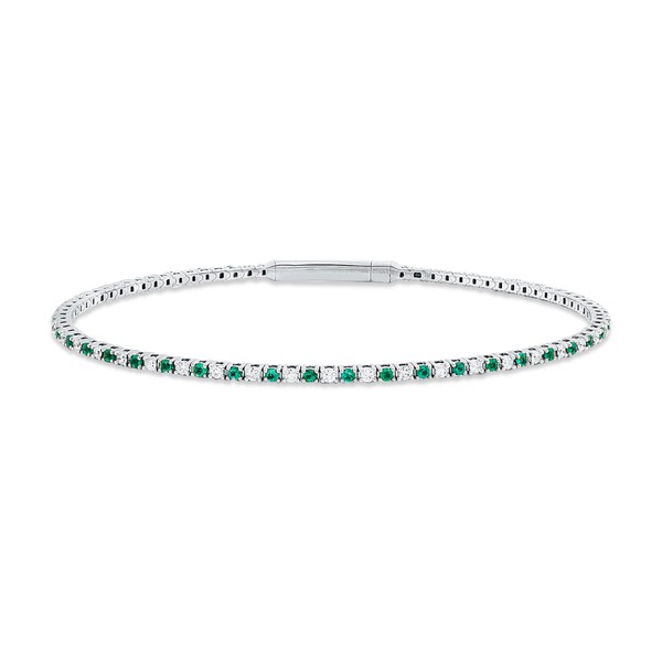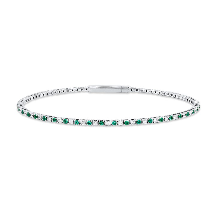 Armreif aus 750 Weißgold 42 Smaragde 0,59ct grün 41 Brillanten 0,5ct TW-SI