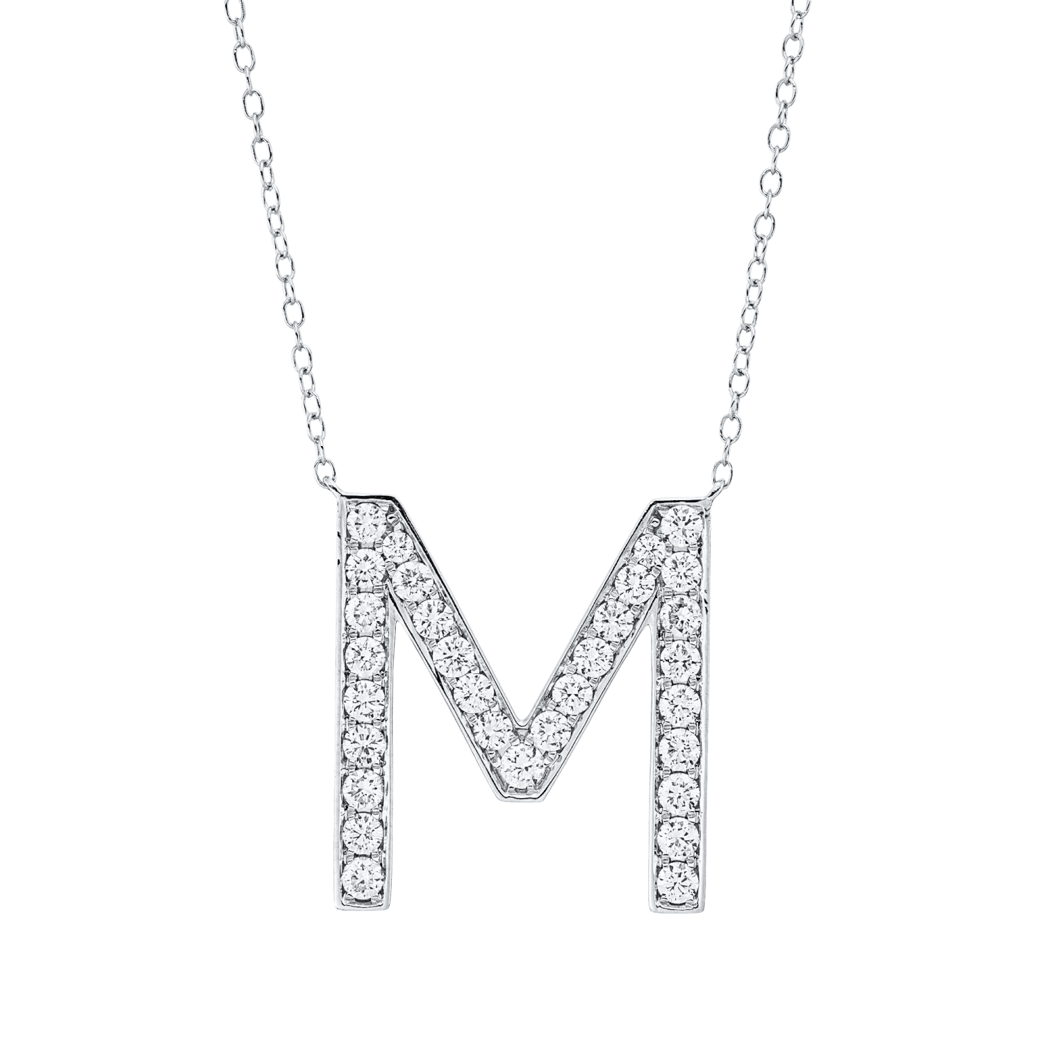 Collier Buchstabe M aus 750 Weißgold 31 Brillanten 0,56ct TW-SI L:43,2cm