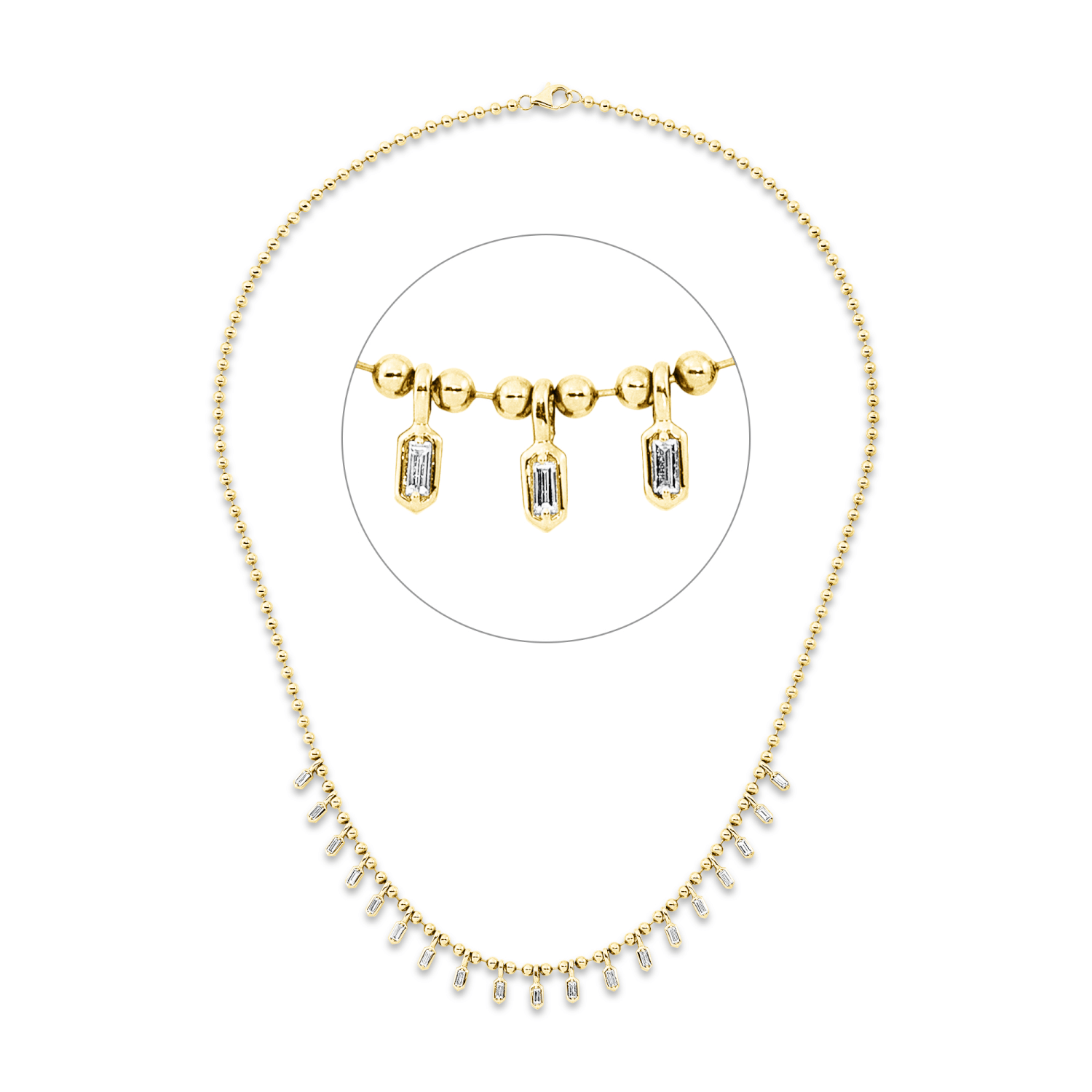 Collier aus 585 Gelbgold 19 Diamanten Baguette-Schliff 0,59ct TW-SI L:45,7cm