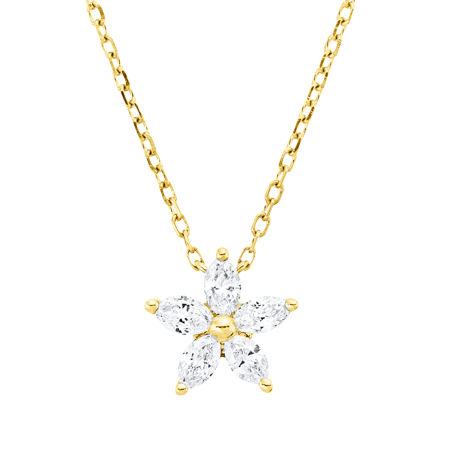 Collier aus 750 Gelbgold 5 Diamanten Navette-Schliff 0,26ct TW-VSI L:45cm