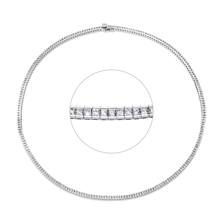 Collier aus 750 Weißgold 232 Diamanten Prinzess-Schliff 6ct TW-VSI/SI L:42,5cm