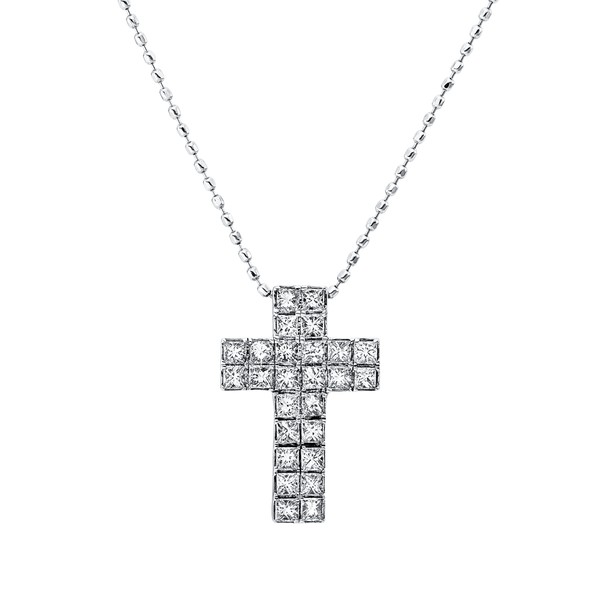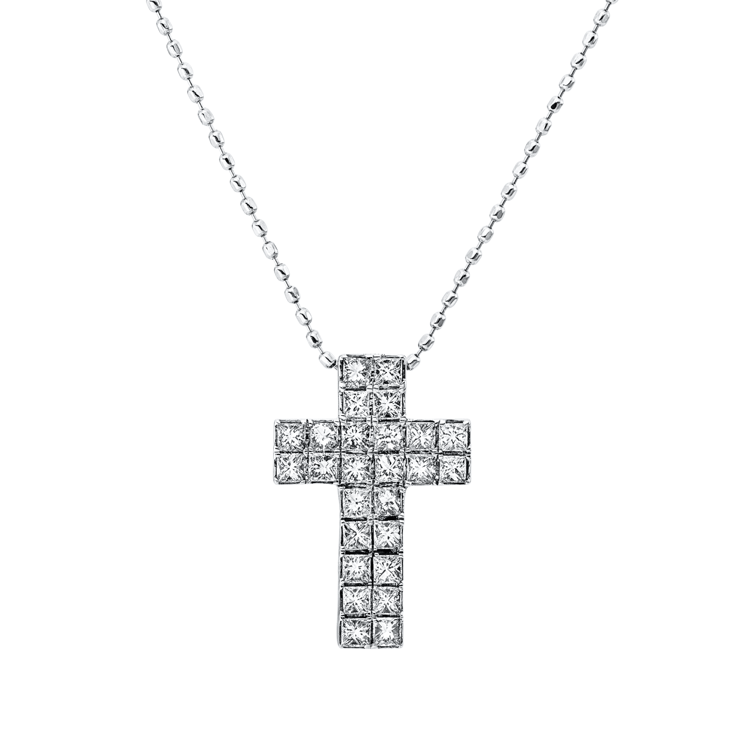 Collier aus 750 Weißgold 26 Diamanten Prinzess-Schliff 0,65ct TW-VSI/SI L:45cm