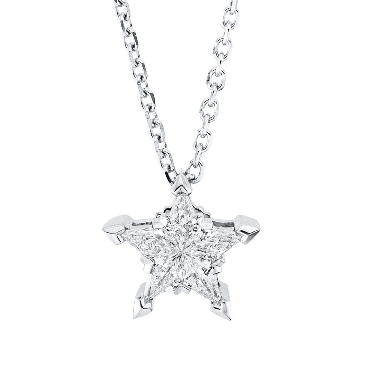 Collier Stern aus 750 Weißgold 5 Diamanten Fanatsy-Schliff 0,25ct F-FVSI L:42cm