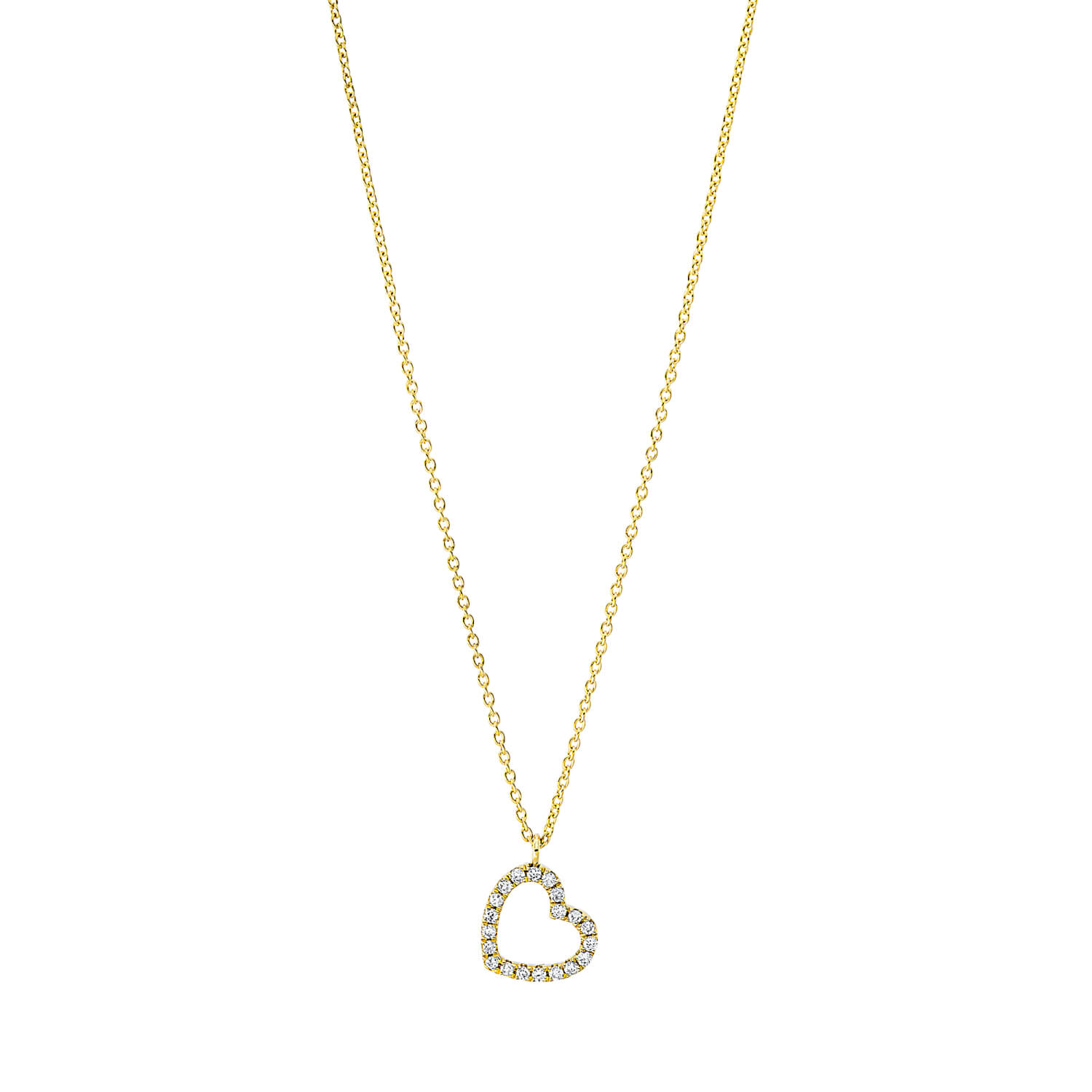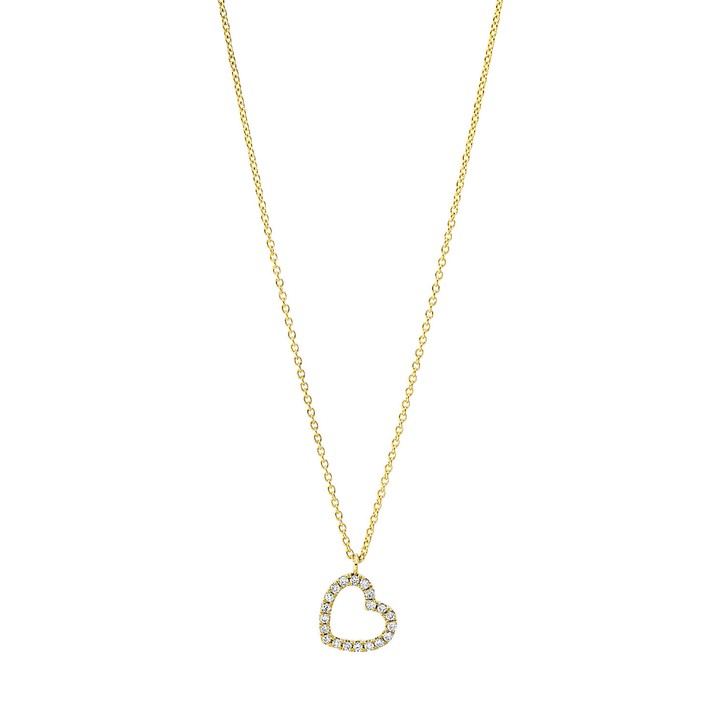 Collier Herz aus 750 Gold Gelbgold 20 Brillanten 0,06ct TW-SI L:45cm