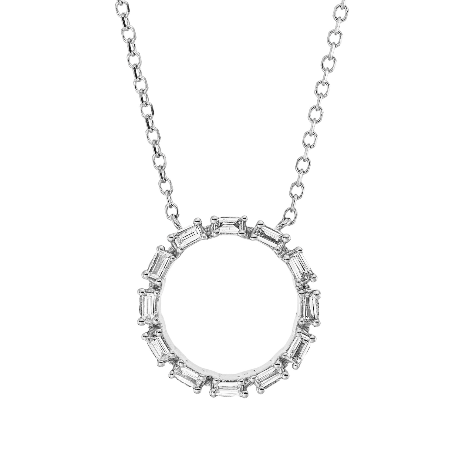 Collier Kreis aus 750 Weißgold 12 Diamanten Baguette-Schliff 0,11ct TW-SI L:45cm