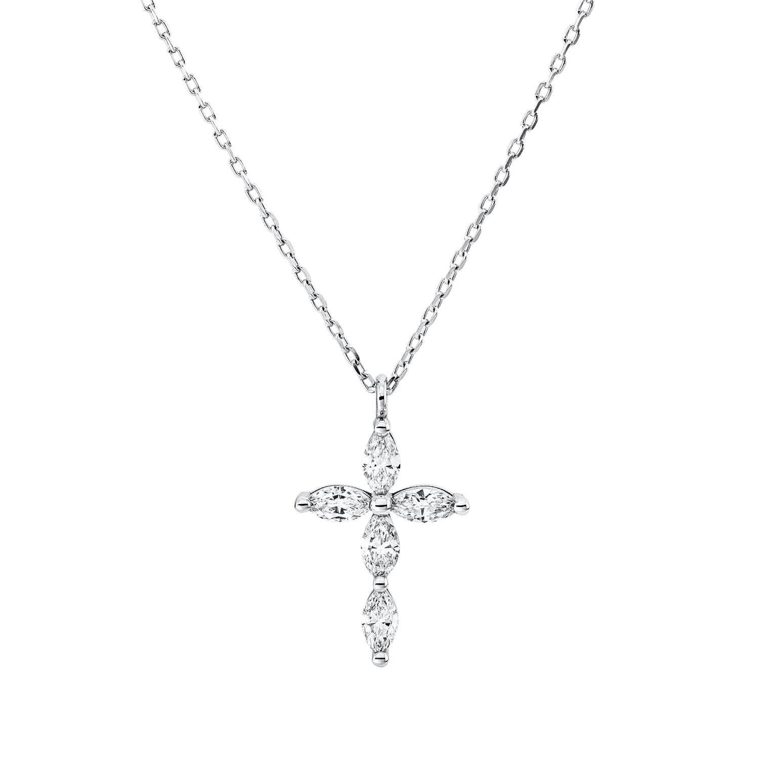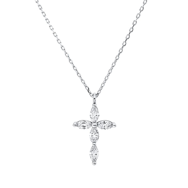 Collier Kreuz aus 750 Weißgold 5 Diamanten Navette-Schliff 0,33ct F-SI L:42cm
