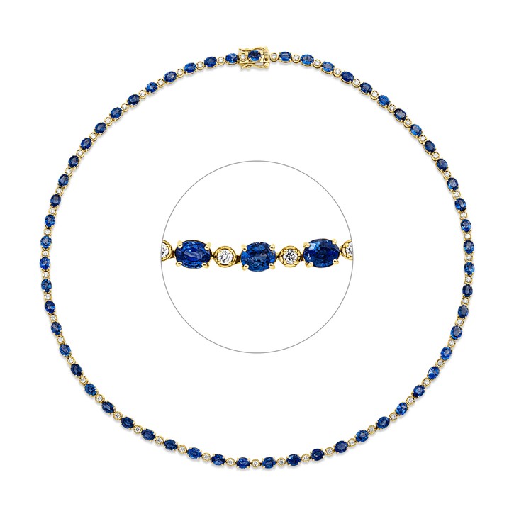 Collier 750 Gelbgold 57 Saphire 16,49ct blau 57 Brillanten 1,16ct F-VSI/SI L:40,6cm