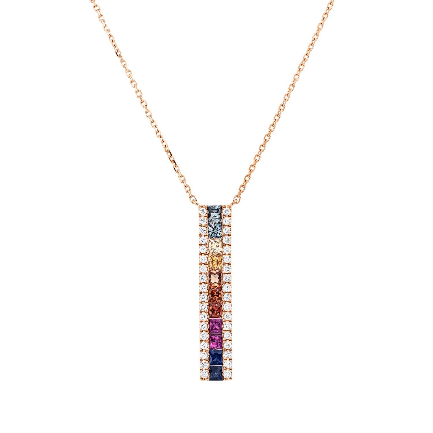 Collier 750 Rotgold 11 Saphire 0,66ct mehrfarbig 36 Brillanten 0,14ct TW-SI L:45cm