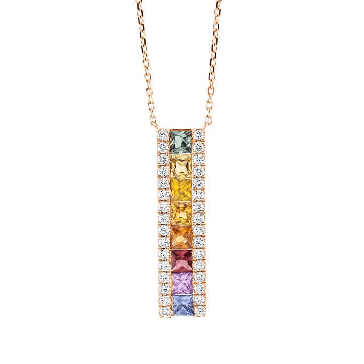 Collier 750 Rotgold 8 Saphire 1,01ct mehrfarbig 32 Brillanten 0,21ct TW-SI L:45cm