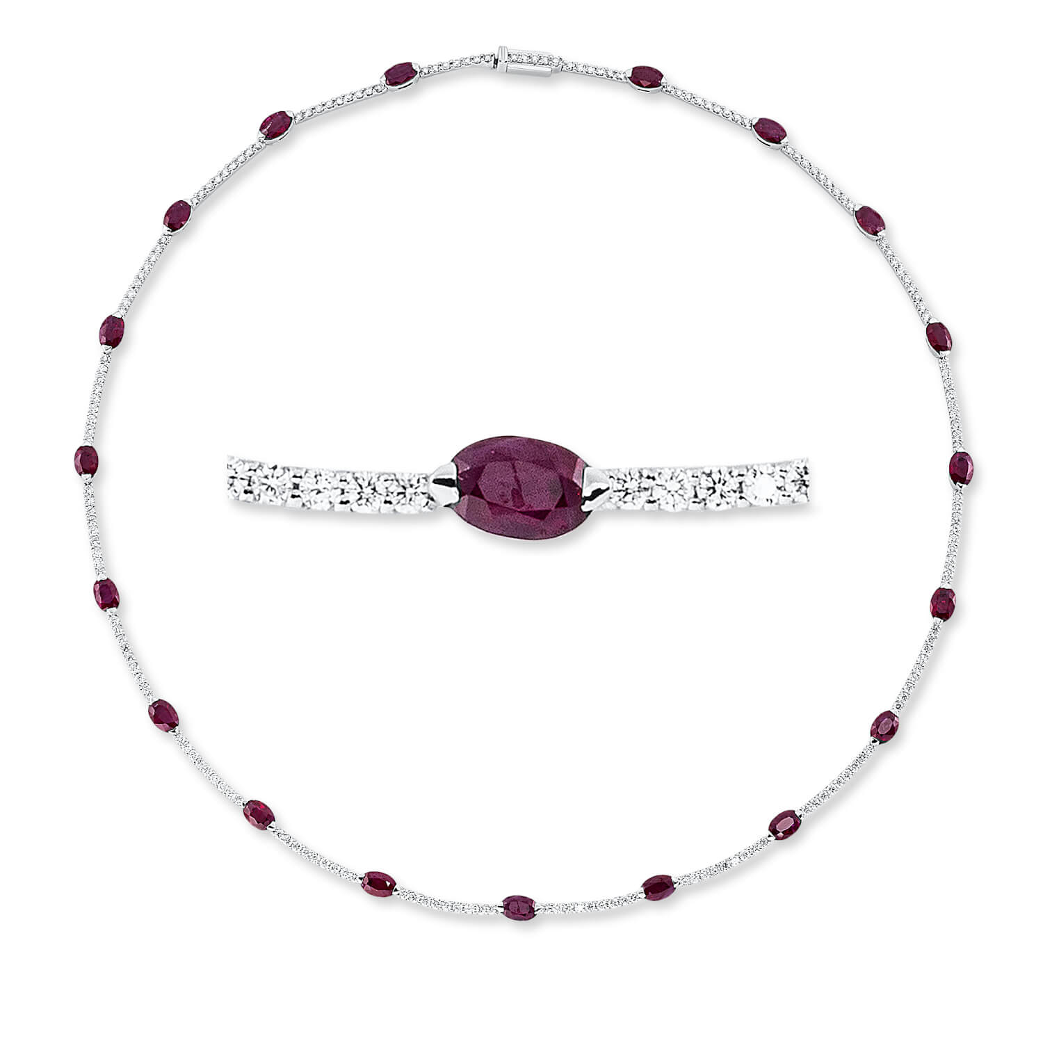 Collier aus 750 Weißgold 19 Rubine 180 Brillanten 3,29ct