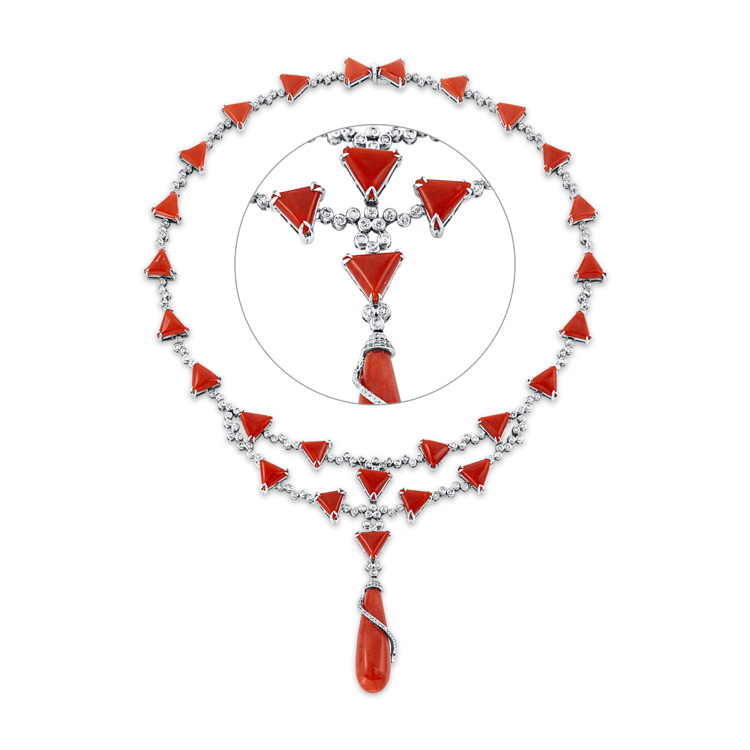 Collier aus 750 Weißgold 27 Koralle 198 Brillanten 2,93ct