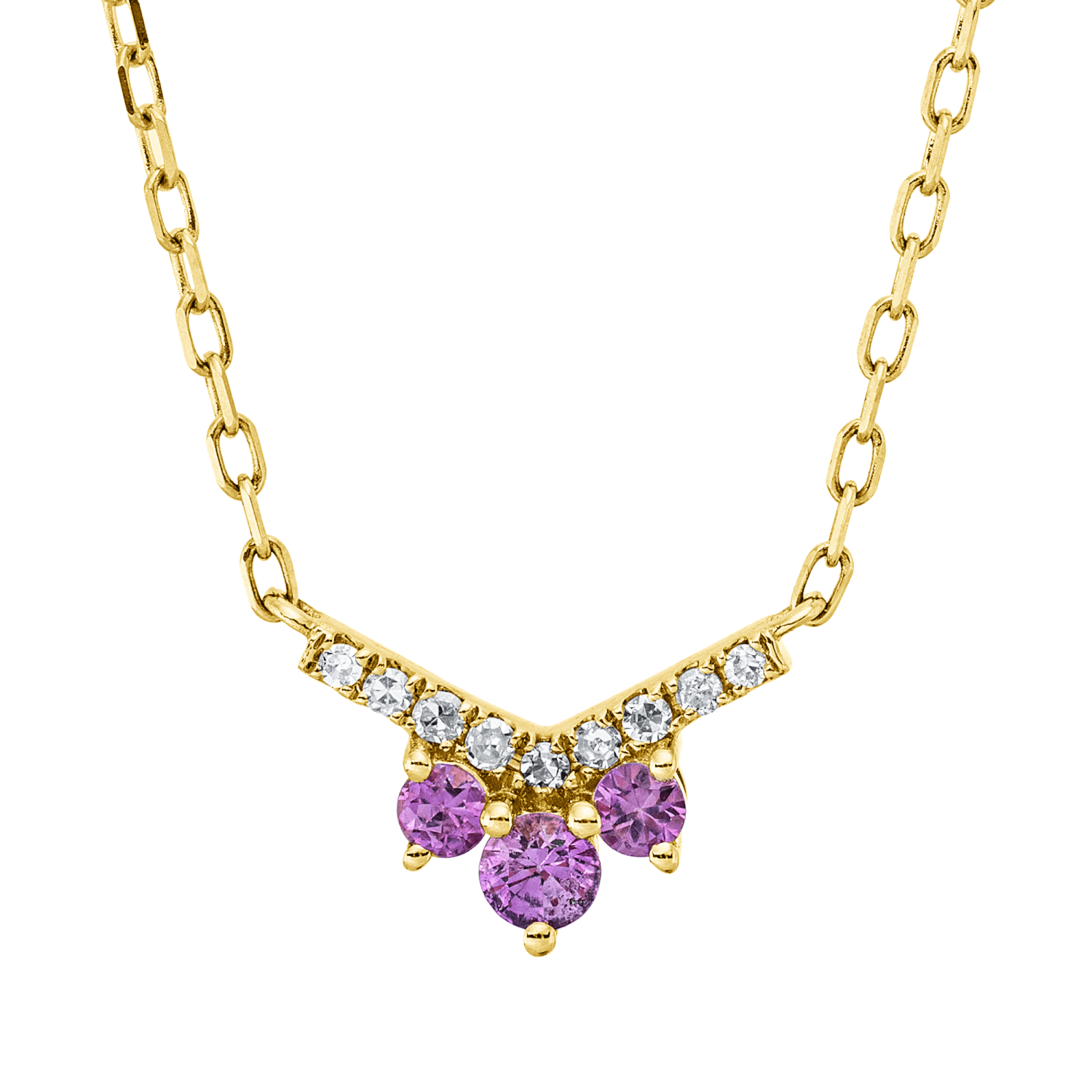 Collier aus 750 Gelbgold 3 Saphire 0,15ct pink 9 Brillanten 0,05ct W-SI L:45,7cm