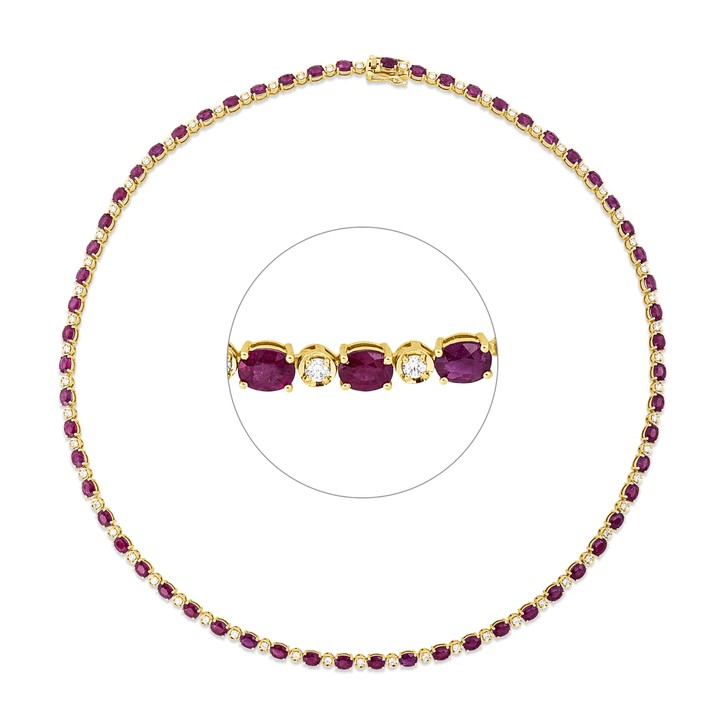 Collier aus 750 Gelbgold 60 Rubine 13,09ct rot 60 Brillanten 1,21ct F-SI L:42cm