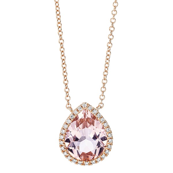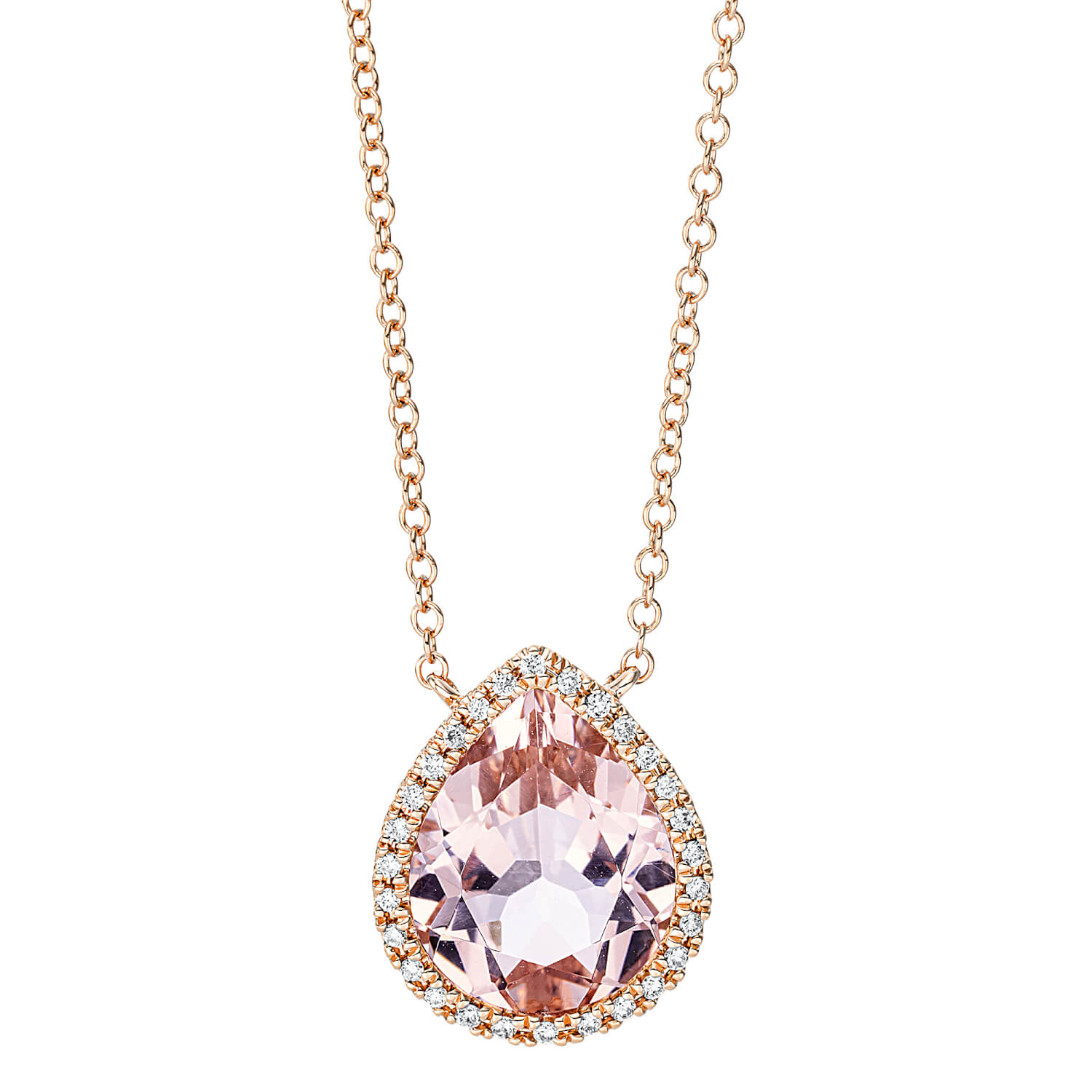 Collier aus 750 Rotgold Morganit 28 Brillanten 0,11ct