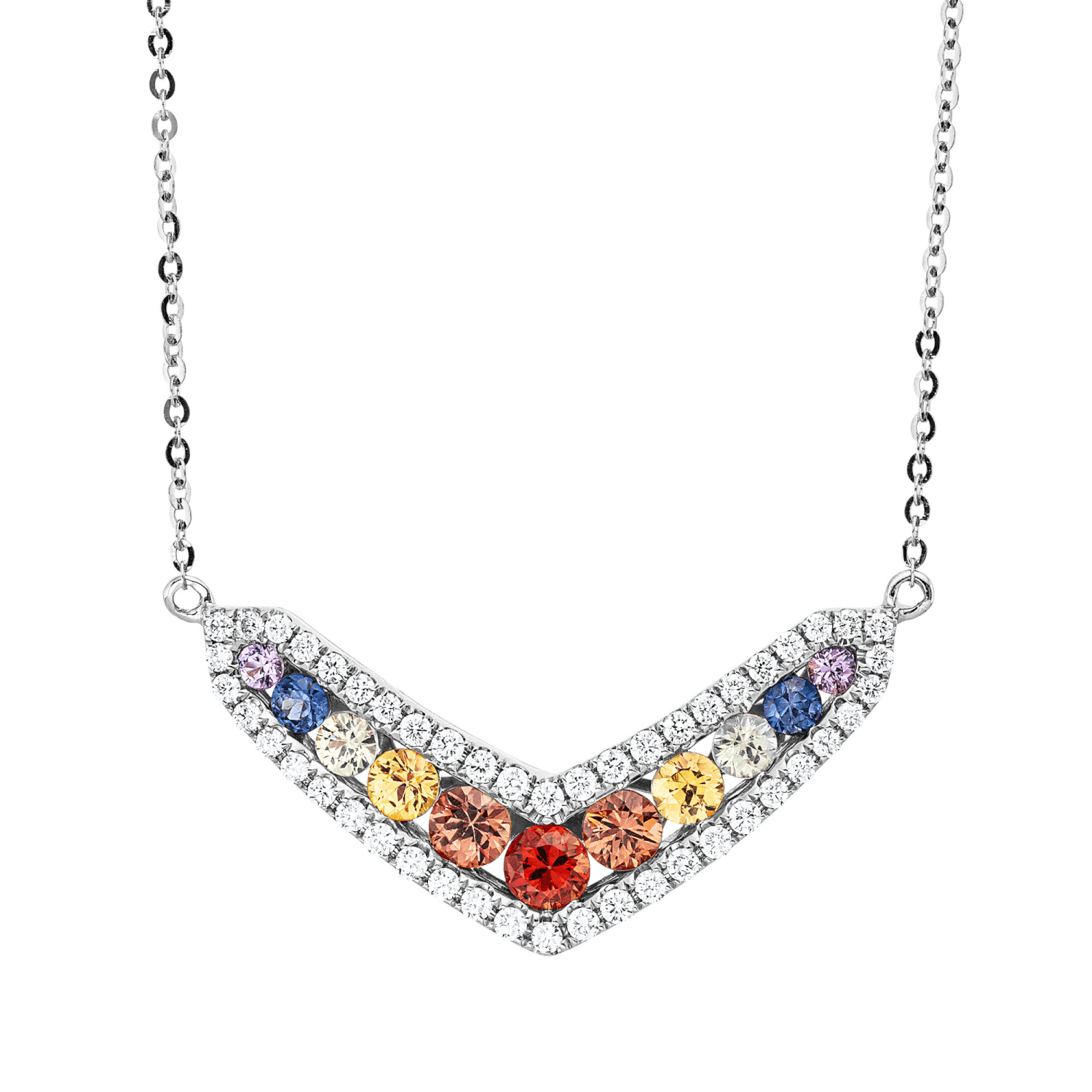 Collier aus 750 Weißgold 11 Saphire 0,95ct mehrfarbig 48 Brillanten 0,3ct TW-SI