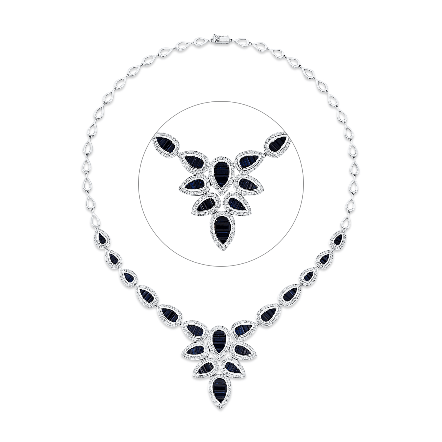 Collier aus 750 Weißgold 66 Saphire 11,65ct blau 482 Brillanten 2,06ct W-PI L:42cm