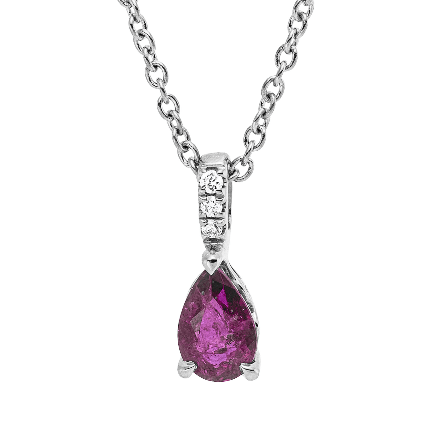 Collier aus 750 Weißgold Rubin 3 Brillanten 0,01ct