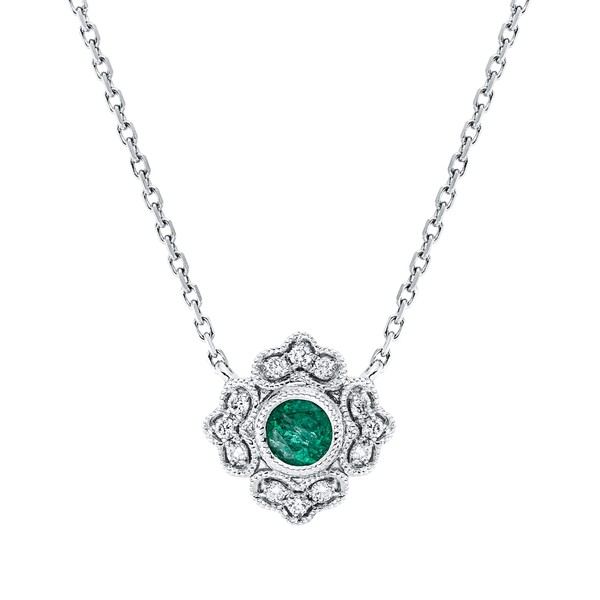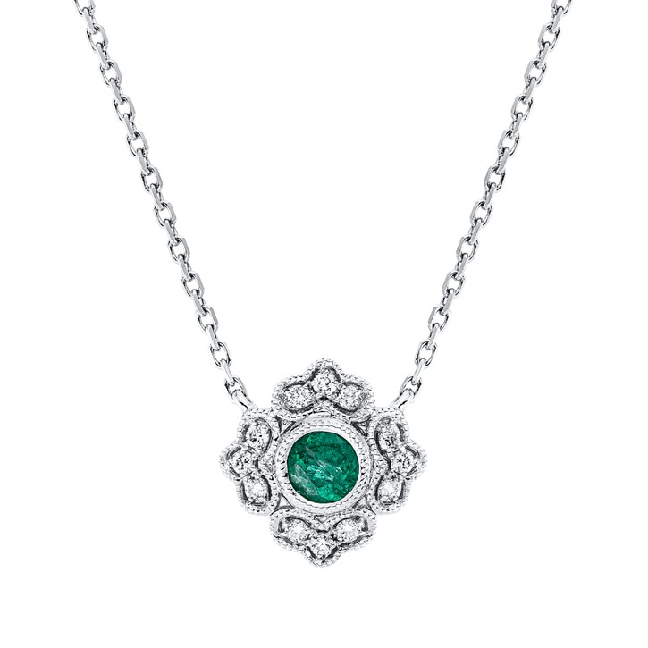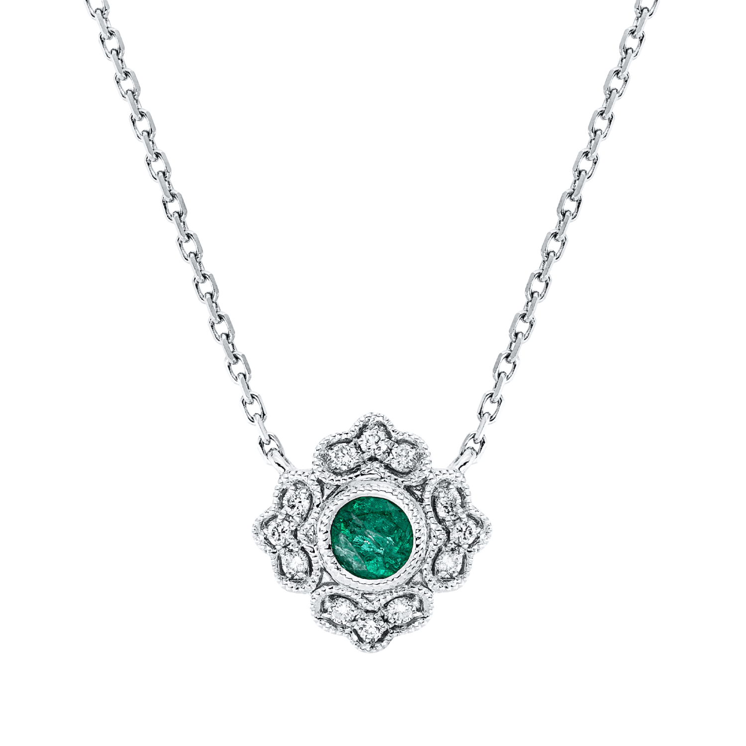 Collier aus 750 Weißgold Smaragd 12 Brillanten 0,07ct