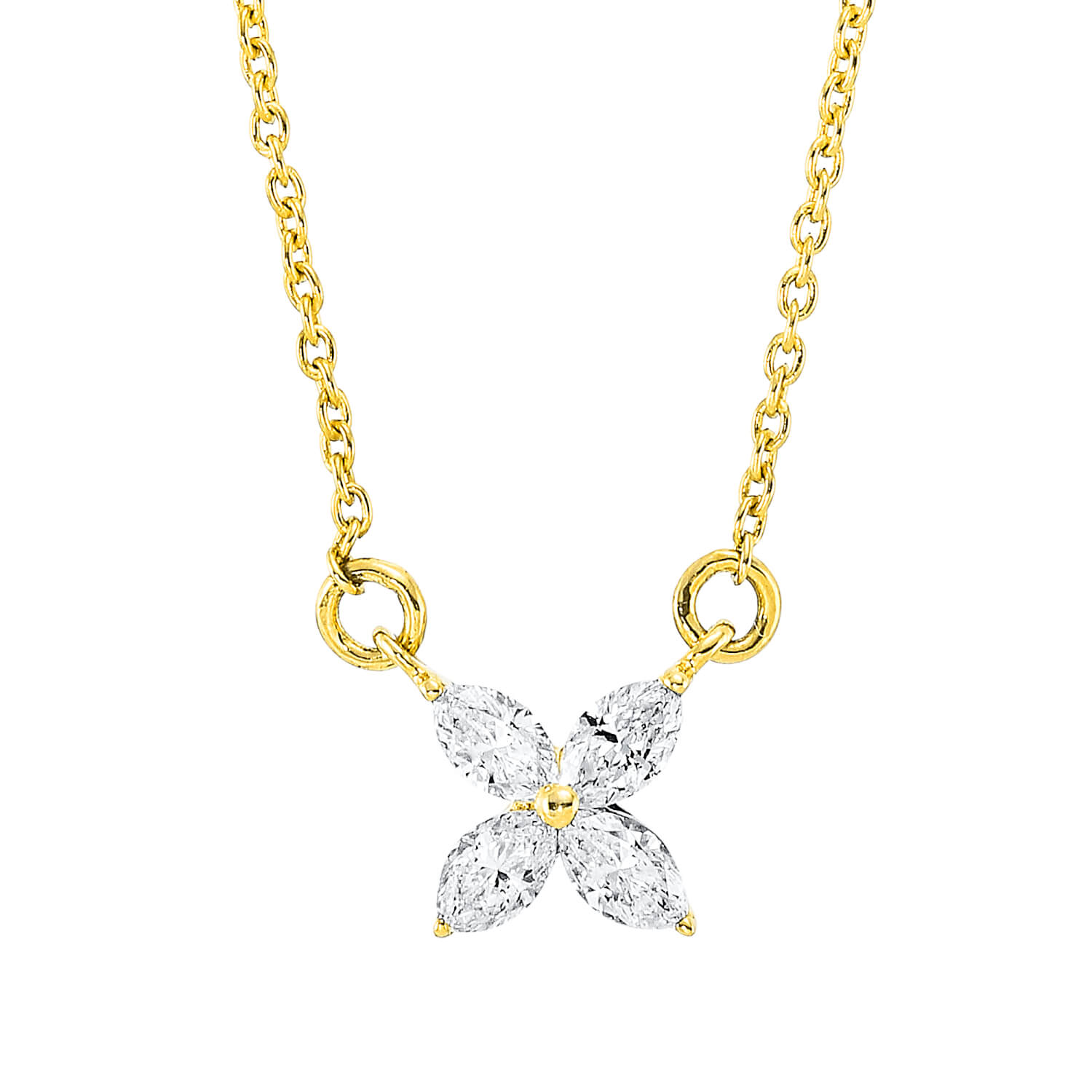 Collier aus 750 Gelbgold 4 Diamanten Navette-Schliff 0,3ct TW-SI L:44cm