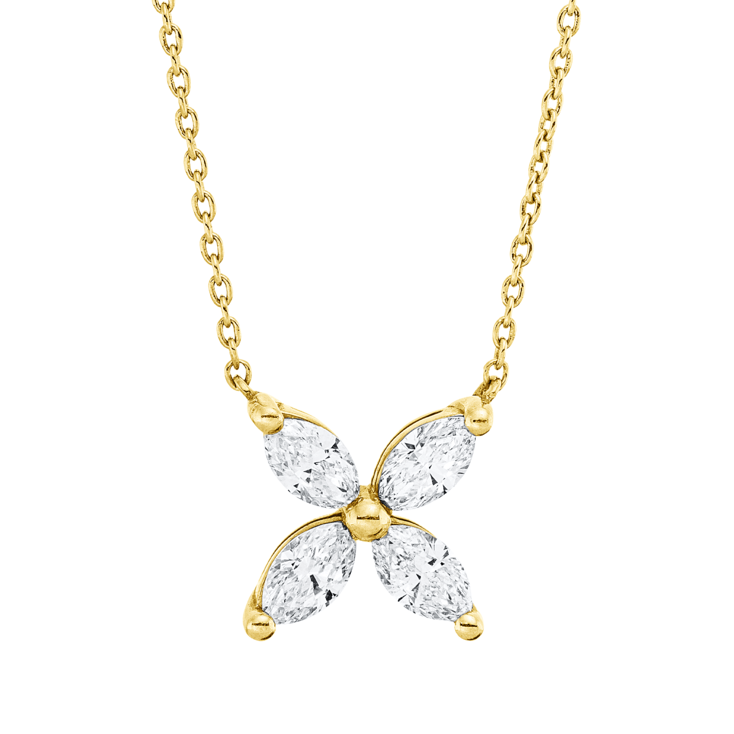 Collier aus 750 Gelbgold 4 Diamanten Navette-Schliff 0,84ct F-SI L:42cm