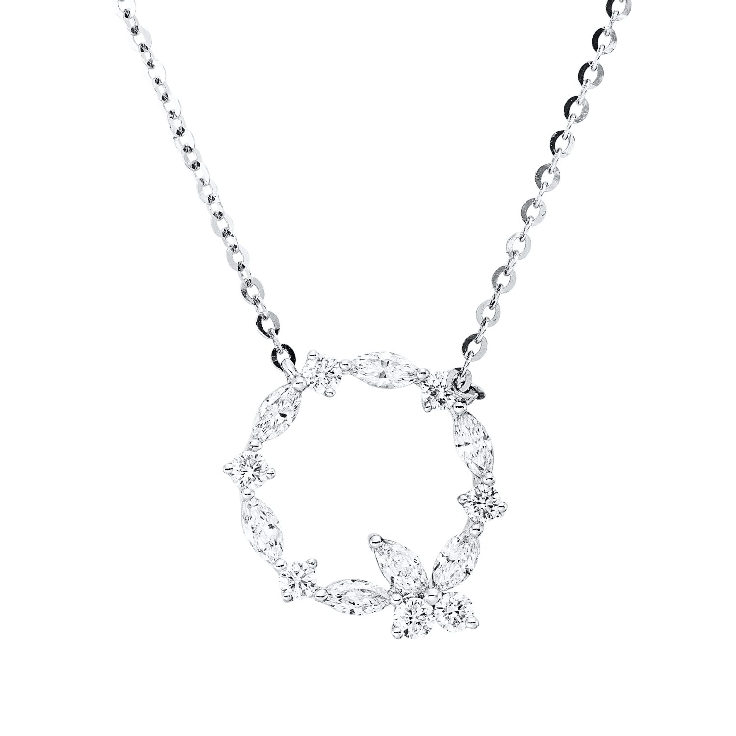 Collier Kreis & Schmetterling aus 750 Weißgold 14 Diamanten 0,36ct L:45,7cm