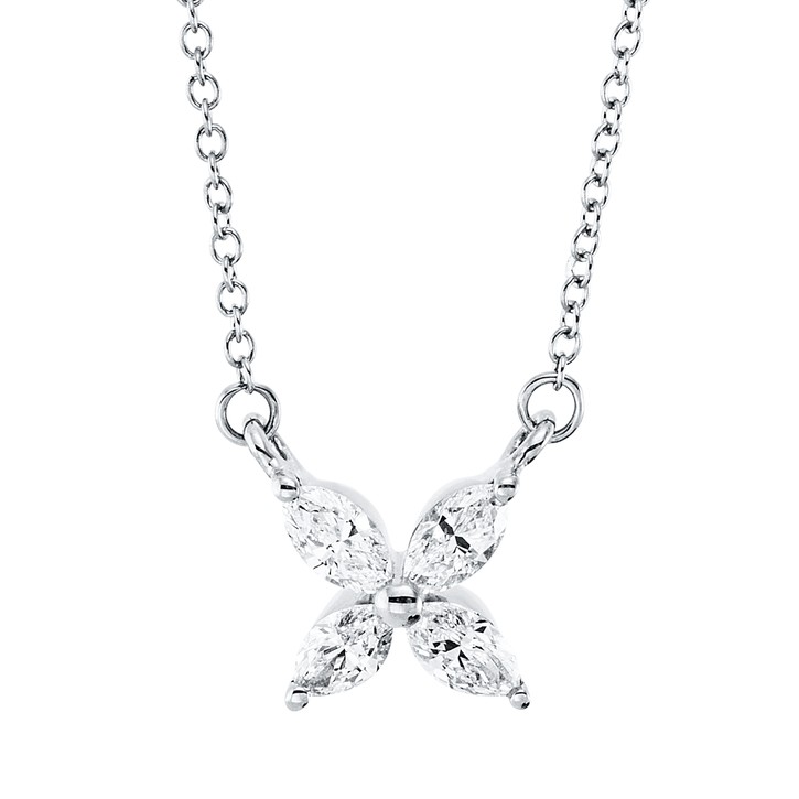 Collier aus 750 Weißgold 4 Diamanten Navette-Schliff 0,24ct TW-VSI L:45,7cm