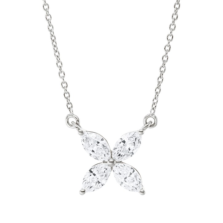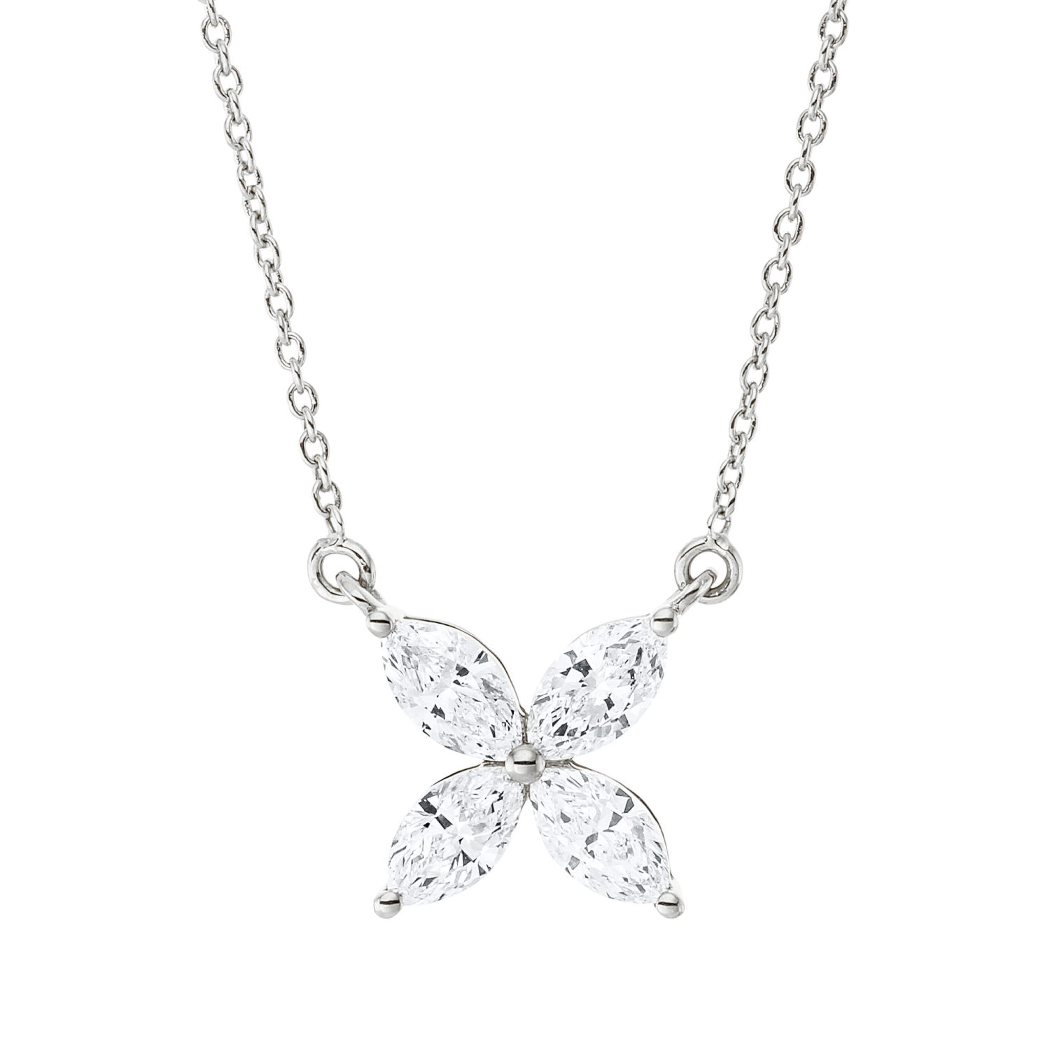 Collier aus 750 Weißgold 4 Diamanten Navette-Schliff 0,36ct TW-SI L:45cm